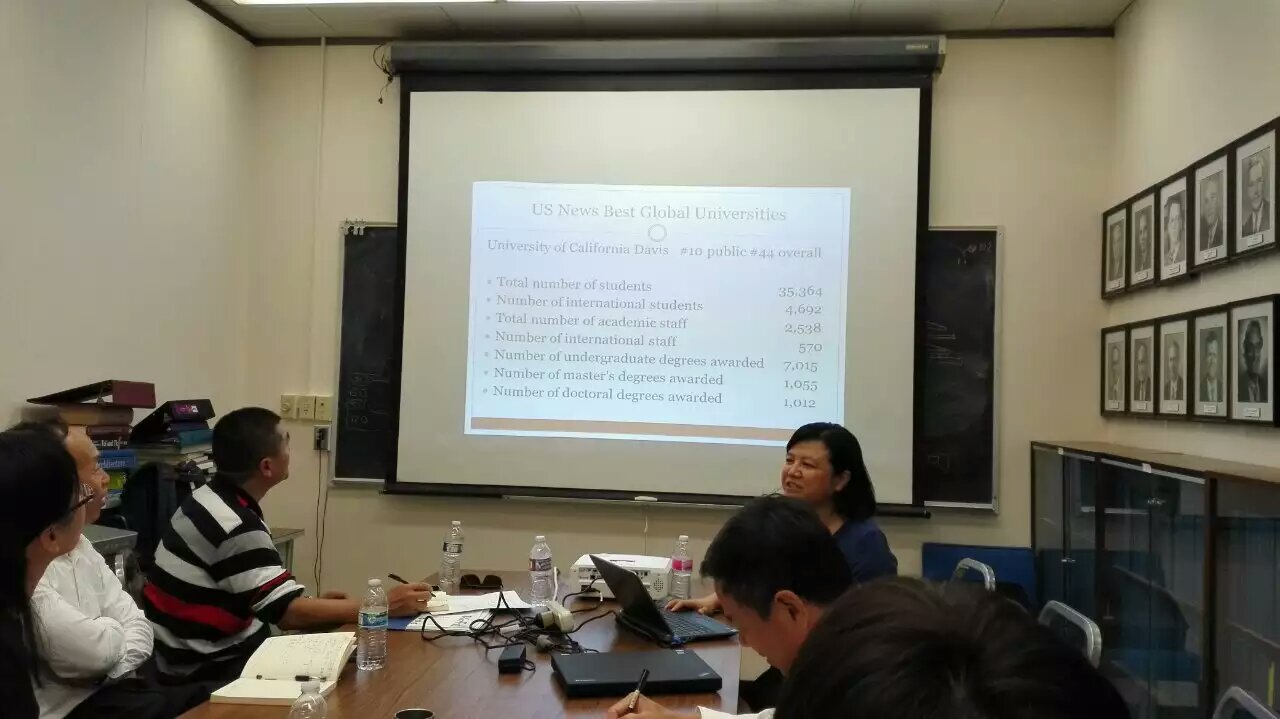 10月15日-30日,申海波教授与河南财经政法大学其他教授一行十余人,前往美国萨克拉门托、旧金山、洛杉矶等地,到加州大学戴维斯分校、伯克利分校、洛杉矶分校、斯坦福大学、加州理工大学等高校进行学习与交流,其中重点对加州大学戴维斯分校和加州理工大学的教学模式、管理体系与管理结构进行了调研与参观学习。学习期间,加州大学戴维斯分校副校长Fadi Fathallah、加州大学生物与农业工程学院院长Bryan Jenkins、加州大学生物与农业工程学院教授、研究生院主任Ruihong Zhang会见了教授代表团,副校长Fadi Fathallah专题介绍了加州大学戴维斯分校的管理体系与结构,Ruihong Zhang教授做了《技术开发与转化、研究生招生与教育》的专题讲座,管理学院教授Marc Lowe主讲了《运营管理与成本核算分析》,加州大学农业事务中心主任、教授Daniel A.Sumner讲了《农业经济问题》,管理学院教授Chih-Ling Tsai主讲了《统计学研究方法国际前沿与创新》,管理学院副主任Elizabeth Moon主讲了《Career Counseling at UC Davis Bussiness School》,管理学院学生事务高级副院长James Stevens介绍了UC Davis的在职MBA项目,社会学系教授、副系主任、系研究生主任Xiaoliang Shu教授主讲了《社会科学学科的而教学与研究》。在加州理工大学,另有两位教授分别讲授了《跨文化培训》和《洛杉矶大都会区的交通规划与展望》。除了学习之外,代表团还考察了三处outlets,考察了mashall、walmart、rose和farget等零售企业,考察了纳帕山谷的葡萄酒庄园,走访了好莱坞的星光大道,体验了环球影城的运作模式,受益匪浅。