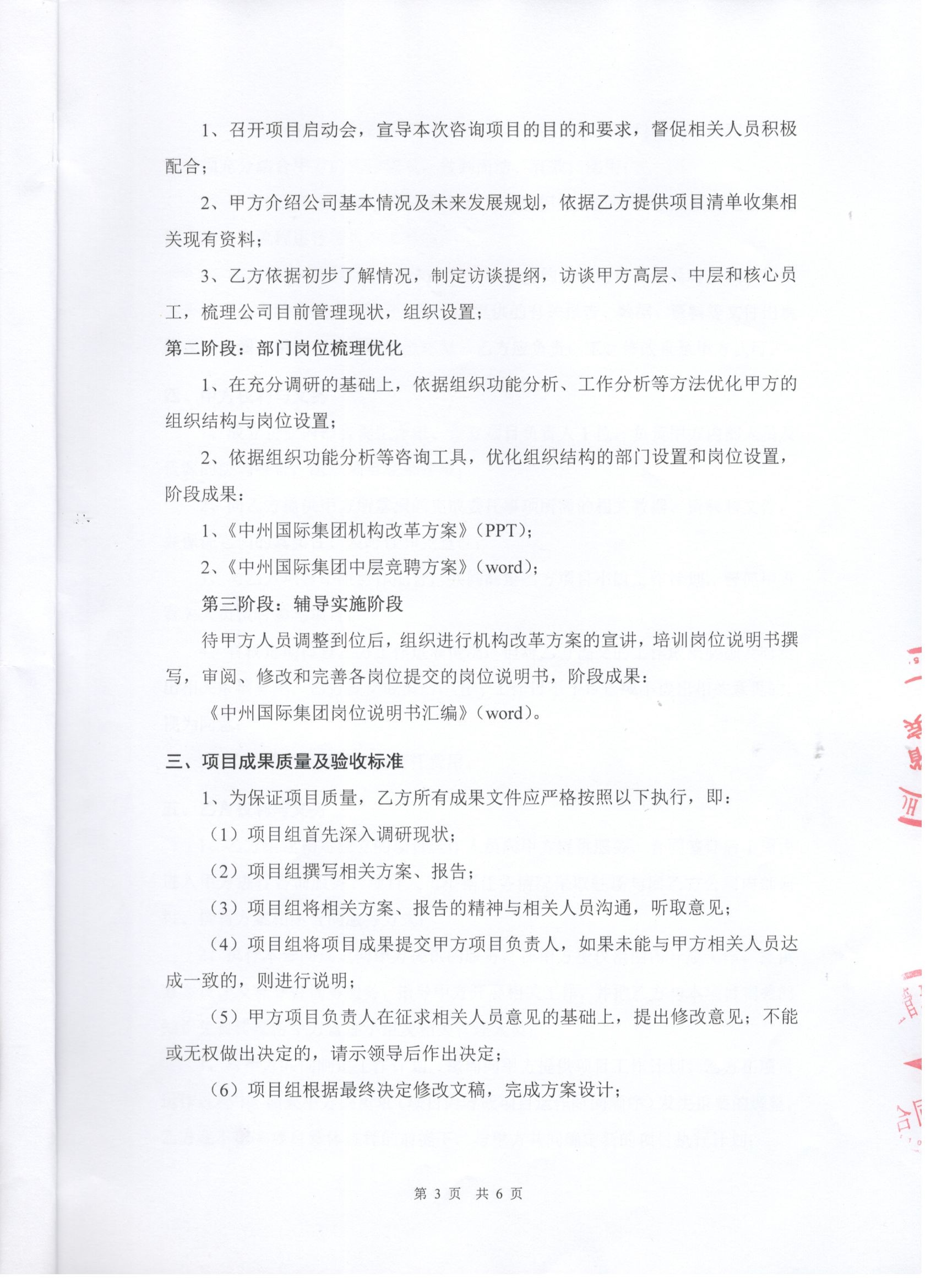 1、在充分调研的基础上,依据组织功能分析、工作分析等方法优化甲方的组织结构与岗位设置;